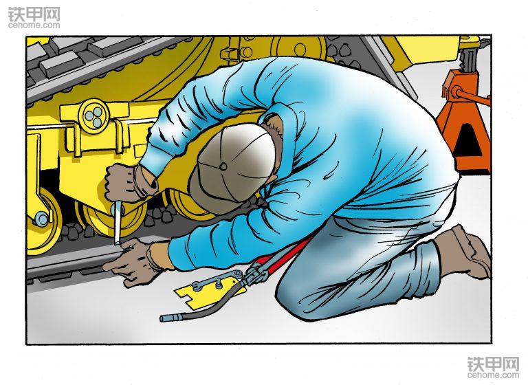 第三步:添加或去除油脂。使用油枪添加油脂收紧履带,清除油脂松开履带。