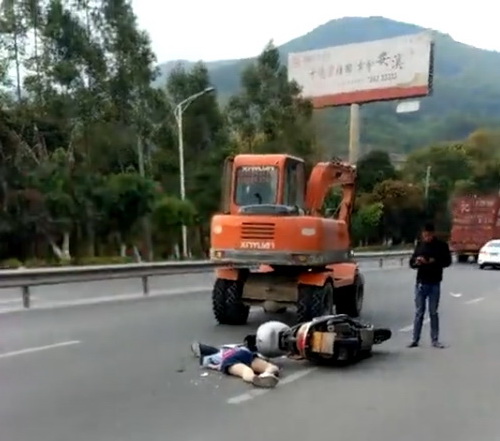 2020年4月4日下午,南安官桥一辆行驶在公路上的挖掘机撞到摩托车发生惨烈交通事故,造成车主摔倒在地上严重重伤不起,目前,事故的原因交警部门正在调查中。福建省工程机械服务中心提醒广大工程机械业主一定要办理相关手续,经过严格工程机械技能培训,取得了操作证,才能减少事故的发生,购买工程机械保险减少车主的经济损失,行驶中一定要慢点再慢点,一定要注意安全!